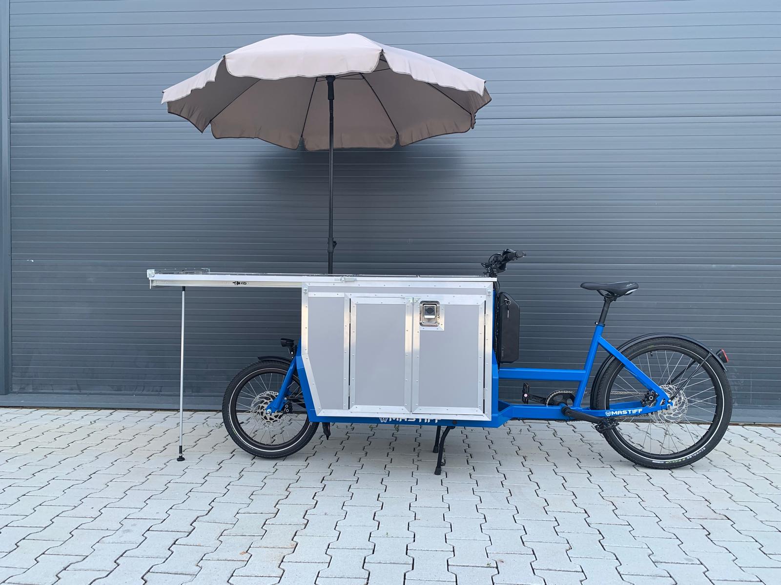 Oldalról nyitható 380 literes szállítódoboz. Strapabíró, mégis könnyű dibond anyagból készült, jól bírja az UV-sugárzást. A tetejéről lenyitható, rögzíthető felületének köszönhetően információs- vagy kínálópulttá alakítható. Kiválóan alkalmas élelmiszer- vagy ételértékesítéssel foglalkozók számára kitelepülésekre vagy rendezvényeken promóciós anyagok kínálására.